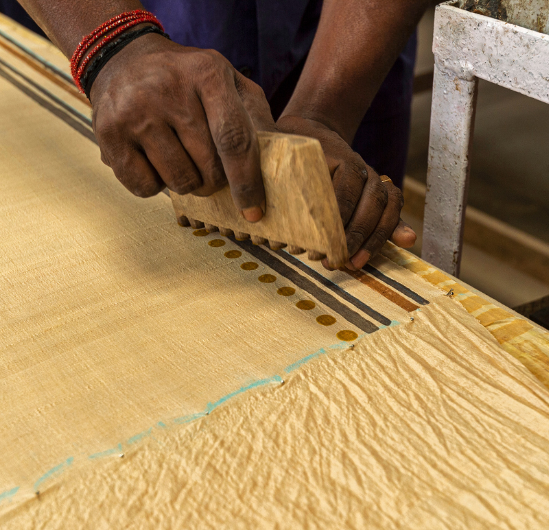 Renowned for its exotic designs & vibrant color palette, Hand-Block Printing is probably the craft with the highest visual expression. The unmatched traditional craft & unparalleled generational expertise yields one of the most magnificent pattern vocabularies ever.